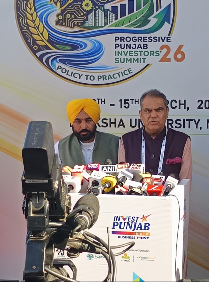 नशा तस्करी के मुद्दे पर मुख्यमंत्री ने कहा कि अंतरराष्ट्रीय सीमा से होने वाली तस्करी को रोकना मुख्य रूप से केंद्र सरकार की जिम्मेदारी है, लेकिन पंजाब सरकार अपनी तरफ से एंटी-ड्रोन सिस्टम लगाकर इस चुनौती से निपटने का प्रयास कर रही है। उन्होंने बताया कि राज्य सरकार ने सीमा के करीब 550 किलोमीटर क्षेत्र में एंटी-ड्रोन तकनीक स्थापित की है।मुख्यमंत्री मान ने यह भी सवाल उठाया कि गुजरात के मुंद्रा बंदरगाह पर लगभग 3,000 किलोग्राम नशीले पदार्थ की जब्ती के बावजूद वहां कोई ठोस कार्रवाई क्यों नहीं की गई। उन्होंने कहा कि पंजाब ने देश का सबसे बड़ा नशा विरोधी अभियान शुरू किया है और राज्य सरकार इस समस्या से निपटने के लिए पूरी तरह प्रतिबद्ध है।राजनीतिक टिप्पणी करते हुए मुख्यमंत्री ने कहा कि पंजाब की उपजाऊ धरती पर नफरत और धर्म की राजनीति के बीज कभी नहीं उगेंगे। उन्होंने भाजपा को पंजाब में “स्कूटर पार्टी” बताते हुए कहा कि पार्टी 2027 के विधानसभा चुनावों के लिए 117 उम्मीदवार भी कहां से लाएगी।मुख्यमंत्री ने यह भी कहा कि प्रोग्रेसिव पंजाब निवेशक सम्मेलन को उद्योग जगत से जबरदस्त समर्थन मिल रहा है और निवेशक राज्य में नए व्यापारिक अवसरों पर चर्चा कर रहे हैं। उनके अनुसार यह सम्मेलन पंजाब में निवेश और औद्योगिक विकास को नई दिशा देने का मंच बन रहा है।