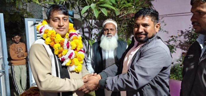 राजस्थान 17 जनवरी राजस्थान मालपुरा देवली थाना क्षेत्र में हेड कांस्टेबल पद पर कार्यरत मालपुरा के नागौरी मोहल्ला निवासी इमरान खान को सहायक उप निरीक्षक (ASI) पद पर पदोन्नति मिलने पर नागौरी समाज की ओर से उनका गर्मजोशी से स्वागत-सम्मान किया गया। समाज के लोगों ने उन्हें माला पहनाकर बधाई दी और उज्ज्वल भविष्य की कामना की।इस अवसर पर उस्मान मास्टर, निजामुद्दीन हाजी, मकबूल भाई, माजिद मास्टर, शहजाद खान, रफीक कंपाउंडर, साकिर खान सहित समाज के अनेक गणमान्य लोग मौजूद रहे। इमरान खान की पदोन्नति से नागौरी समाज में खुशी की लहर दौड़ गई और उन्हें बधाई देने वालों का तांता लगा रहा।समाज के सदस्यों ने कहा कि इमरान खान की यह उपलब्धि युवाओं के लिए प्रेरणास्रोत है और उनकी मेहनत व ईमानदारी का परिणाम है।